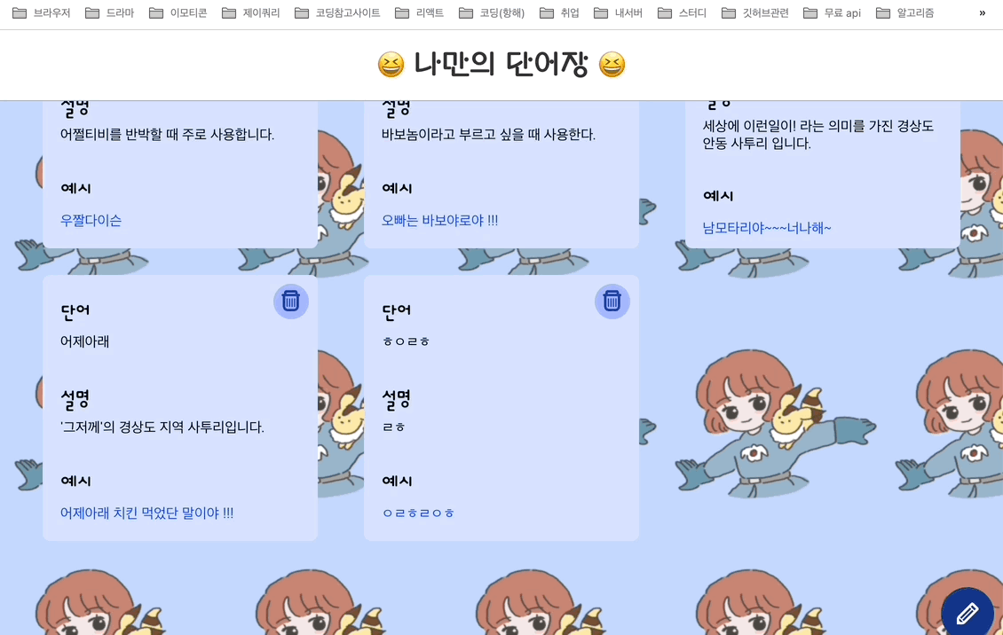 일단 단어추가 상자에서 빈값을 입력하면 값을 입력해달라는 alert창을 띄운 상태이다..