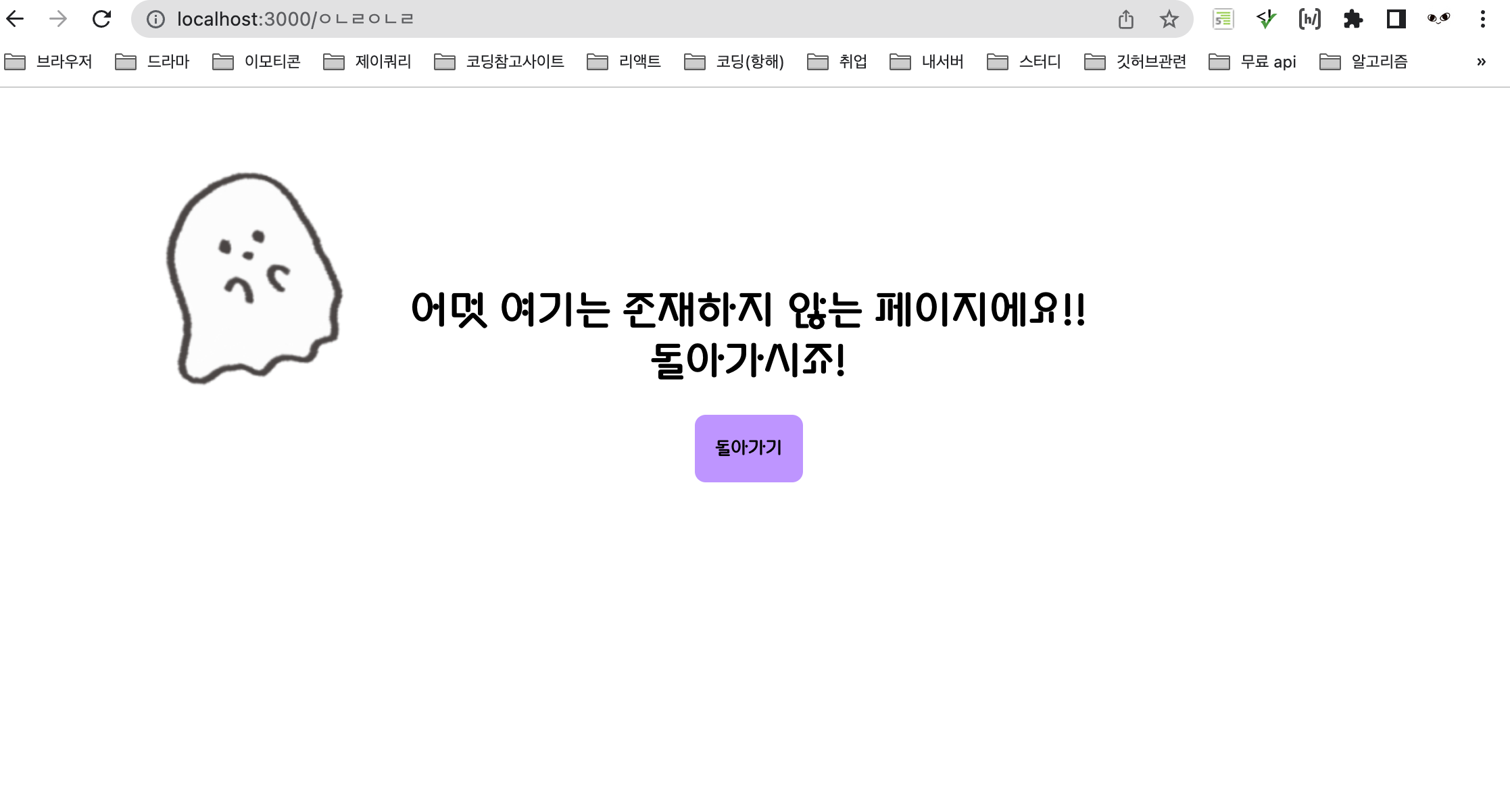 NotFound페이지 완성 !! 나의 트레이드 마크..유령ㅋㅋㅋㅋㅋㅋㅋㅋㅇㄹ👈내 이름과 자음이 똑같아서 유령 캐릭터를 선택했다.