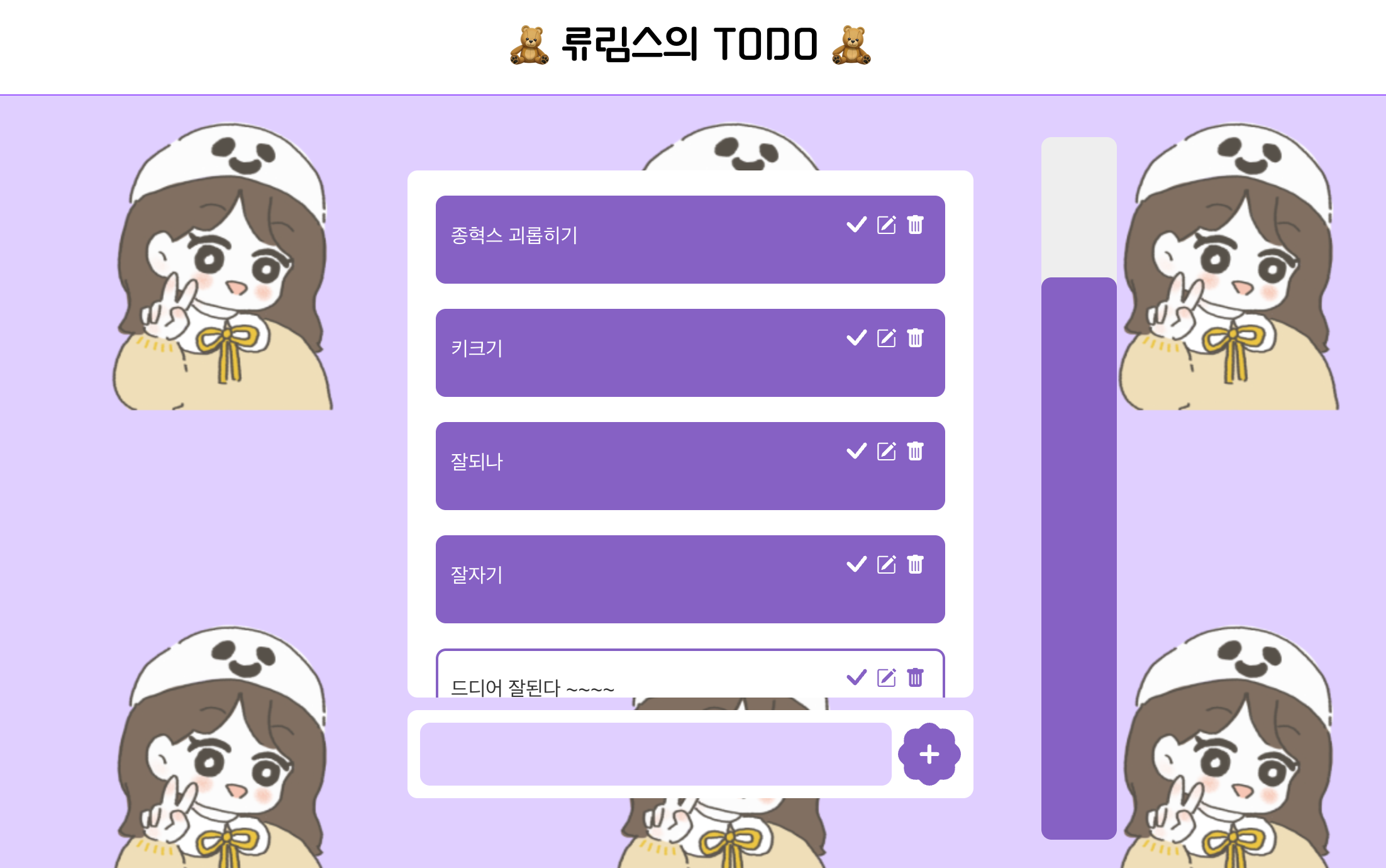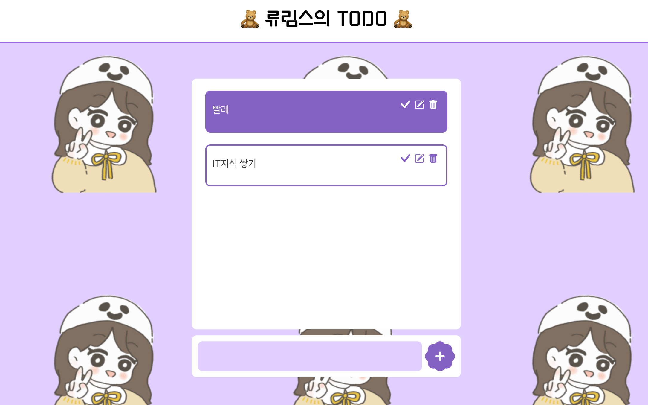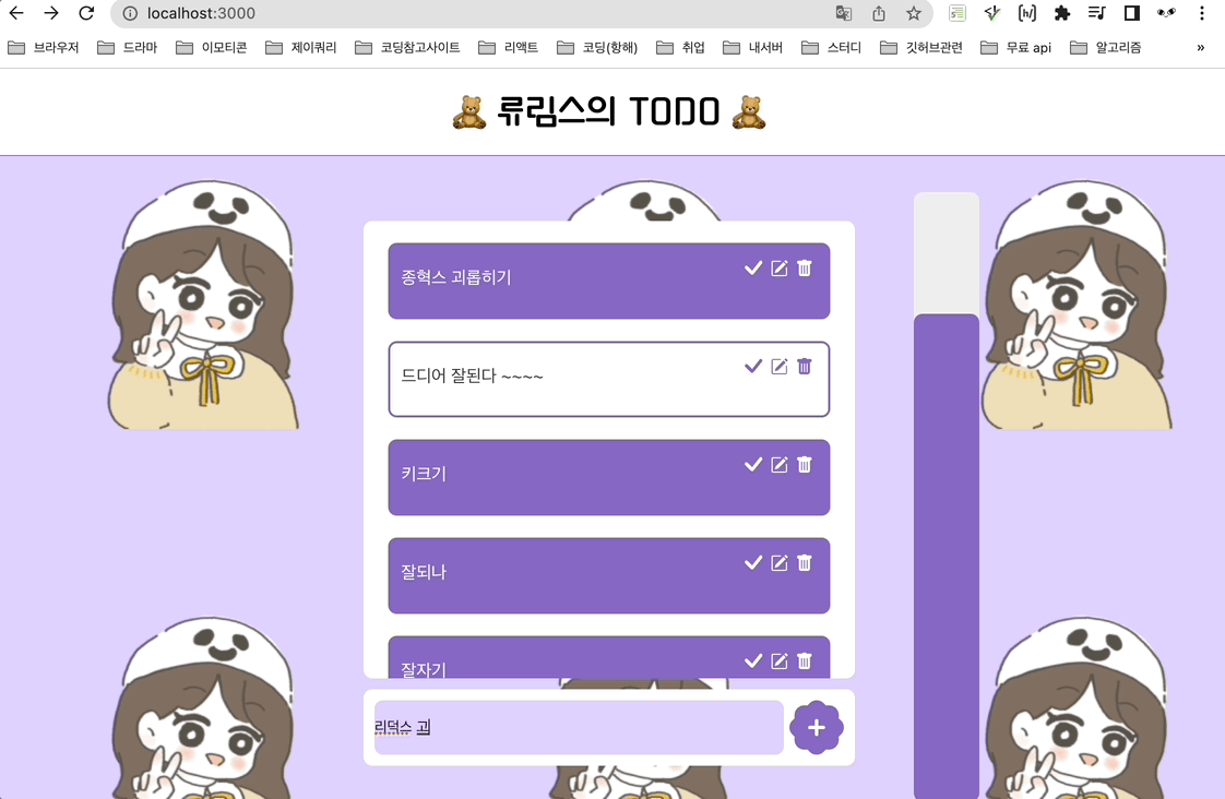 체크 기능 삭제기능 모두 잘된다.ㅠㅠ