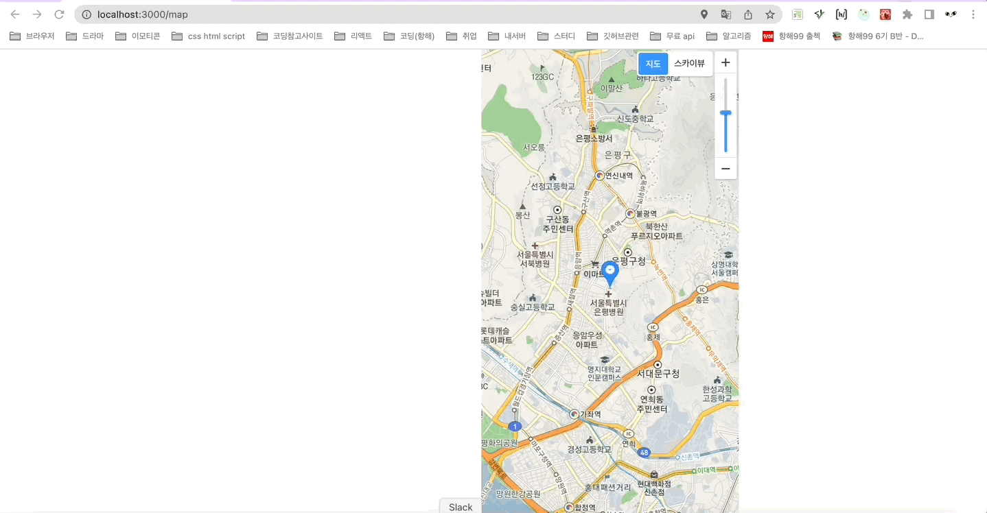 일단 위의 코드를 넣으니까 화면처럼 지도가 잘나왔당 !!! 성공 !