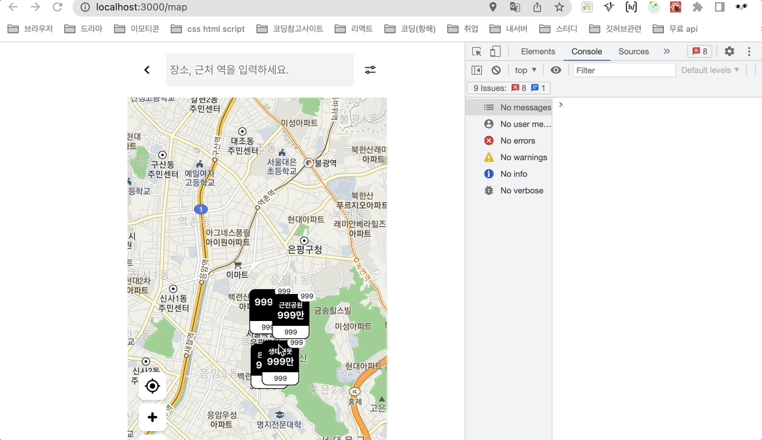 그리고 우리조의 핵심 기능은 지도로 오피스 매물 검색하고, 지도 이동 할때마다