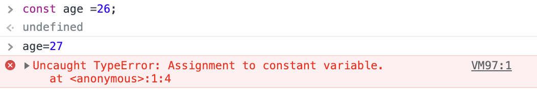 const로 선언한 변수에는 새 값을 할당할 수 없다.