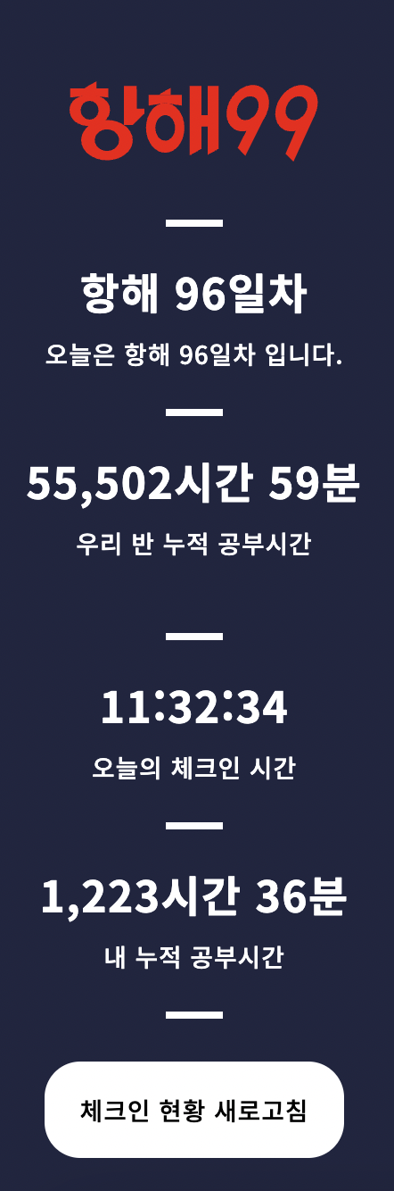 무한한 성장을 위해 ㅎㅎ앞으로 항해에서 몸에 익힌 공부습관으로 달려나가겠다 ~~~~~~!!!!