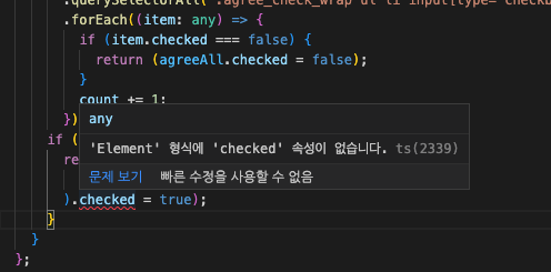 Element형식에 checked 속성이 없습니다. ^^ ;